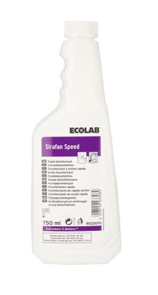 Sirafan Speed on alkoholipõhine kasutusvalmis pindade desinfitseerimisaine, mis hävitab baktereid, seeni ja viiruseid. Kiiretoimeline desinfektsiooni kõikidel toiduainetega kokkupuutuvatel pindadel nagu toidukäsitluspinnad, lõikelauad, kutterid, viilutajad jne. Ei vaja loputamist.