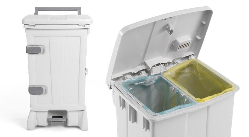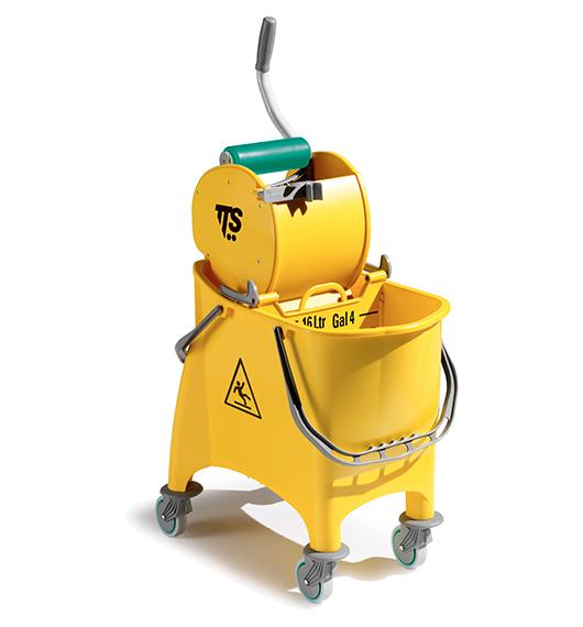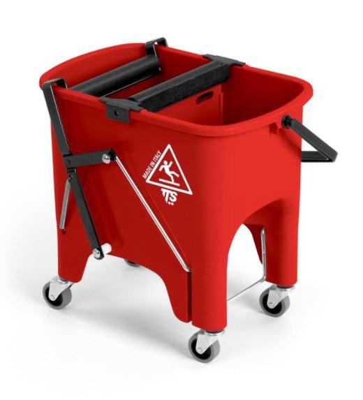 Tugevast plastikust ohutussildiga 2-osaline 15L ämber. Kaks integreeritud kummist kuivatusrulli, mis toimivad pedaaliga. Rattad Ø 50 mm. Mõõdud: 46 x 32 x 42 cm