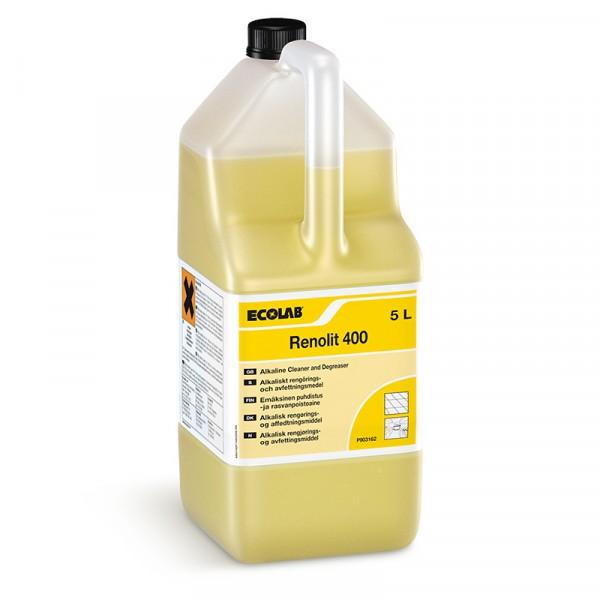 Renolit 400 on aluseline puhastus- ja rasvaeemaldusaine suurköökidelele. Renolit 400 sisaldab metallikaitsevahendeid, mistõttu võib seda kasutada kõigil pindadel, ka alumiiniumi puhastamiseks. Toode sobib suurepäraselt ka näiteks köögi põrandate pesuks ja rasvaimurite sõrestike leotamiseks. Kastis: 2 tk