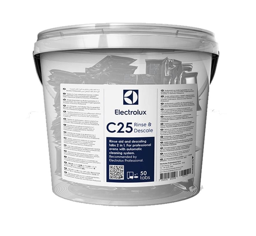 Electrolux C25 loputustabletid mis on mõeldud kasutamiseks Electrolux Professional Skyline Combi Oven ahjudes. Loputab ahju sisepinnad hoolikalt ja eemaldab lubjakivi setted. Puhastusjuhised: https://youtu.be/_WUEUo9zh2Q