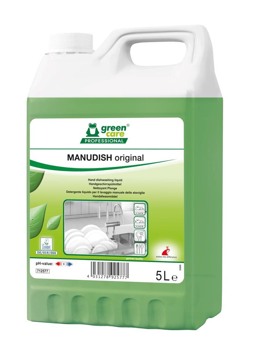 MANUDISH original on ökoloogiline ja tõhusalt puhastav nõudepesuvahend. Bioloogilisi tsükleid järgiv toode on ohutu inimestele ja puhastustöötajatele. Tööohutust parandava MANUDISH originali nahale sobivust on kliiniliselt testitud ja toode mõjub juba väikese koguse kasutamisel. Peamiselt taastuvatest ressurssidest valmistatud MANUDISH original tunnistab oma vastutust tulevaste generatsioonide ees. MANUDISH originali kasutatakse nõude käsipesuks. Ei sobi nõudepesumasinatele. Kastis: 2 tk