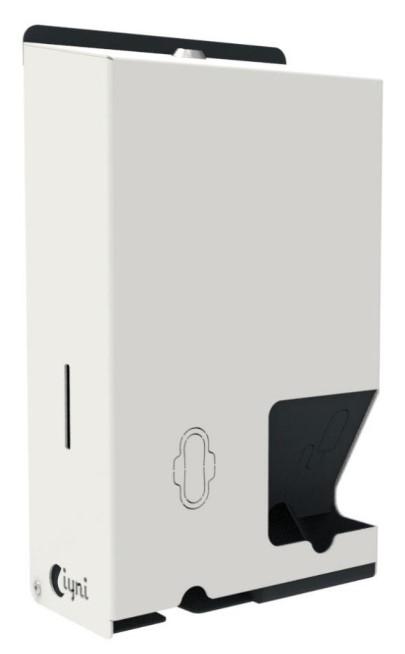 • Materjal: pulbervärvitud teras • Värvus: valge • Mahutavus: 50 hügieenisidet ja 150 tampooni • Netokaal täidetuna: ~3.8kg • Mõõdud: 220x350x98mm (l x k x s) • Seinakinnitus 4 kruviga Ø4.5mm • Võtmega lukustatav