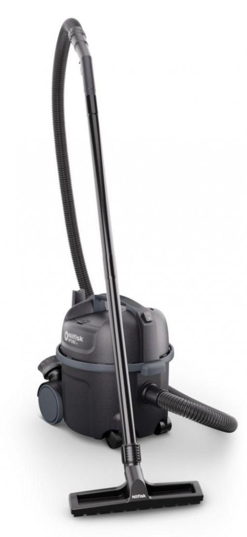 Nilfisk VP300 R, mis on valmistatud 30% ulatuses tarbijajärgsest materjalist, PCR-st, mis on jätkusuutlikum taaskasutatud plasti tüüp. Sobib ideaalselt kontorite, hotellitubade, jaemüügipunktide ja sarnaste kerge kuni keskmise koormusega rakenduste puhastamiseks. Standardvarustuses on H13 HEPA väljalaskefilter. See aitab säilitada puhastuskeskkonnas kõrget õhukvaliteeti. Nimivõimsus 800W, imemisvõimsus toru otsas 215W, õhuvool 25 l/s, tolmukoti maht 10L, mõõdud: 39,5 x 34 x 39 cm, kaabli pikkus 10 m, kaal 5,5 kg.
